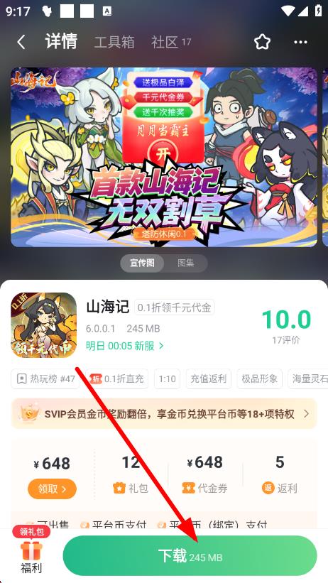 3、点击游戏进入详情页,了解游戏介绍、福利活动等,再点击下载,安装完成后就能开始玩游戏了。