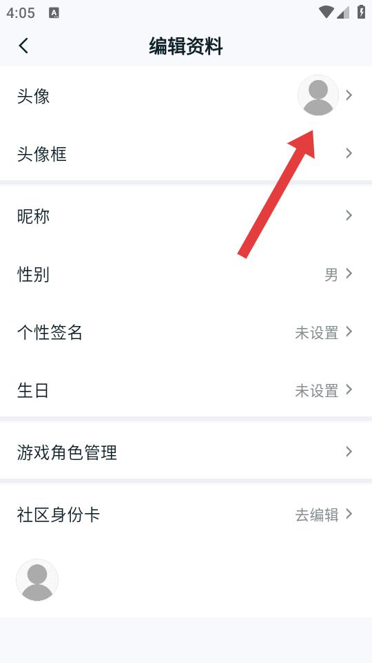 3、在编辑资料页面中,点击头像选项,后续可以从相册选择图片或拍摄新照片作为新头像。
