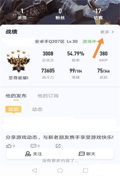 3.进入资料页面后,点击更多,就能查看该好友的全部战绩详情了;