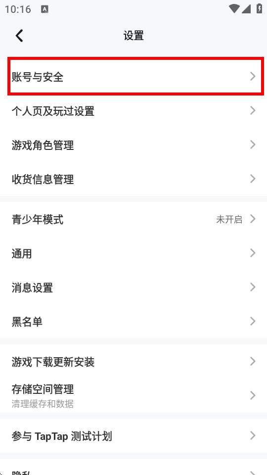 2、在设置界面中找到并点击账号与安全选项,进入账号安全相关设置页面。