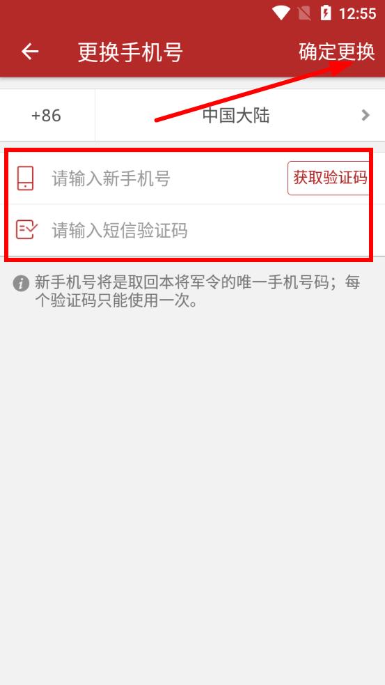 4、在新页面输入新手机号,点击获取验证码,收到验证码后填入对应框内,点击确定更换即可完成换绑。