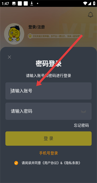 4、在密码登录页面输入账号和密码后,点击“登录”,完成账号登录操作。