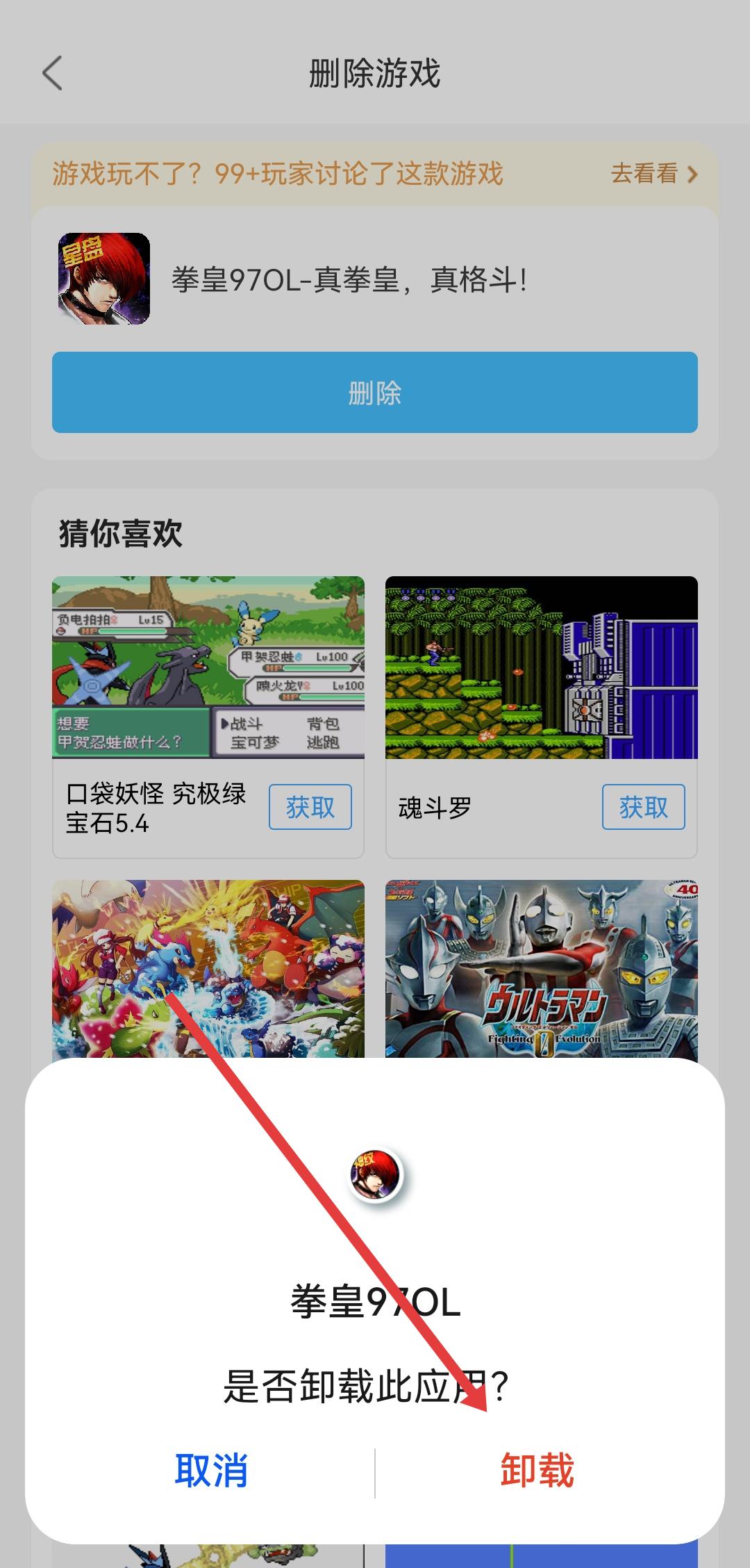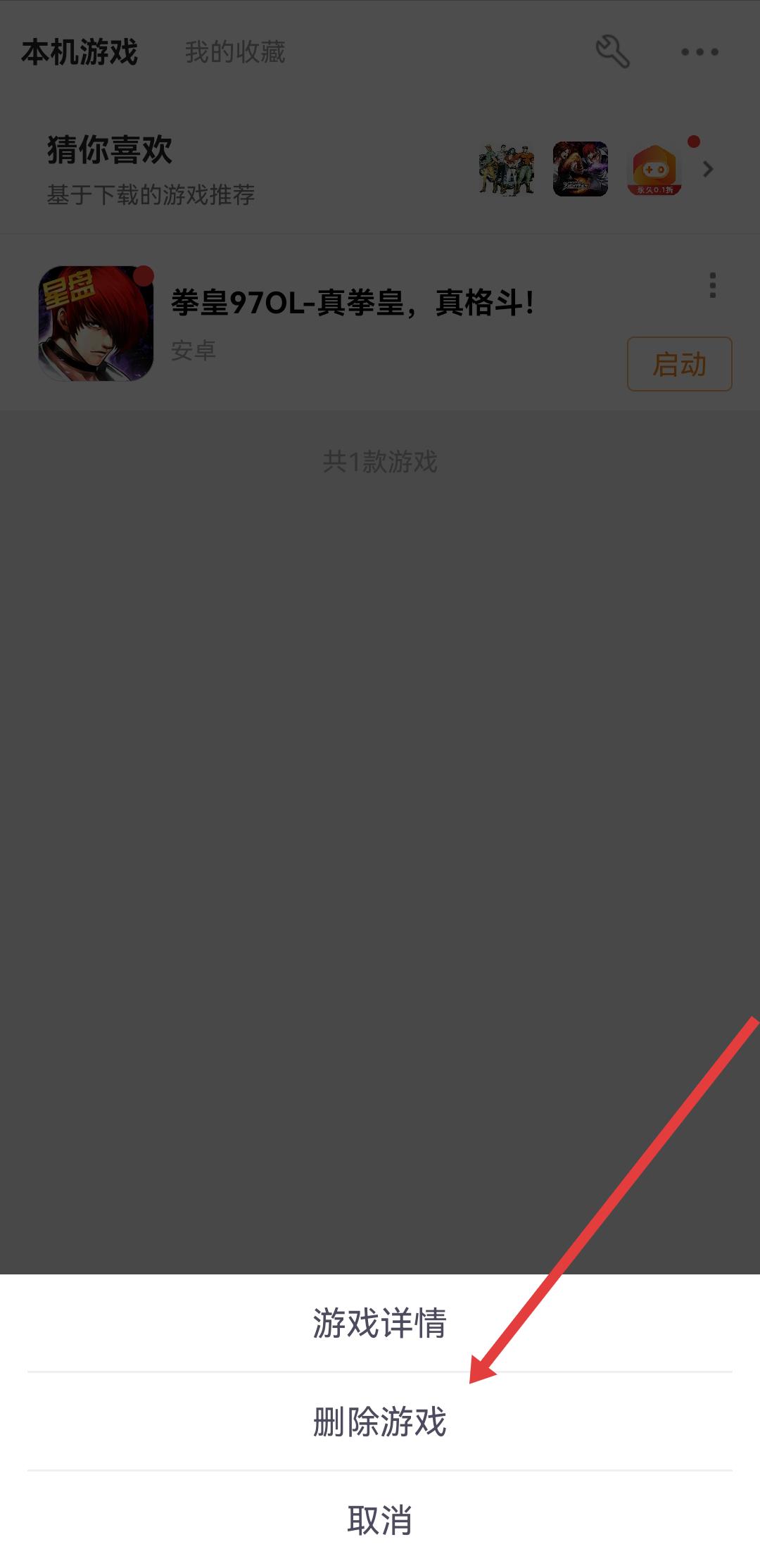 2、在弹出的选项菜单中,选择点击删除游戏,进入游戏安装包的删除流程。