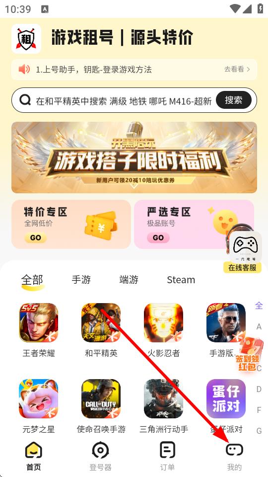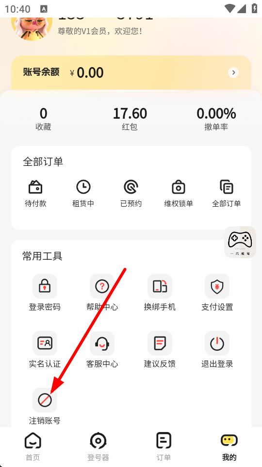 1、打开一元租号app,点击底部导航栏中的我的。