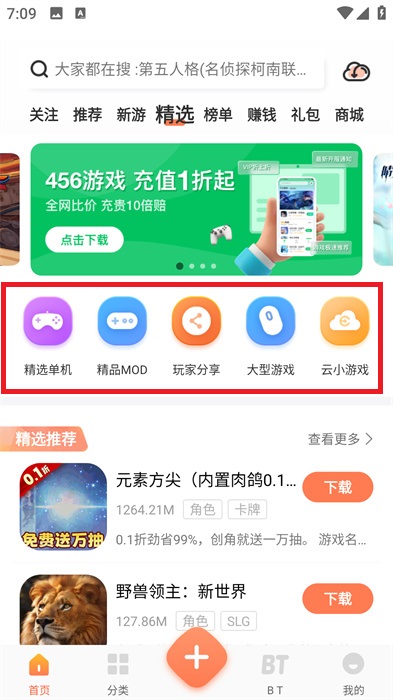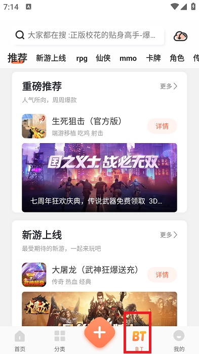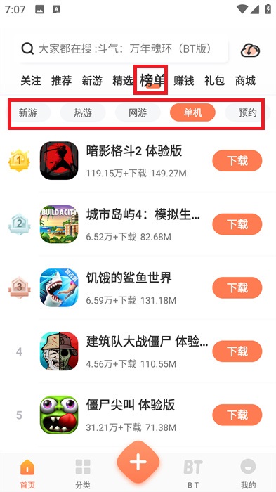 3、【BT】频道之中,能够看到各种类型的BT游戏,都是一些加速或者是经过修改过的游戏,带来非常爽快的玩法体验;