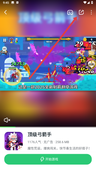 3、在进入到游戏详情页面中,可以点击顶部转发按,进行分享操作。
