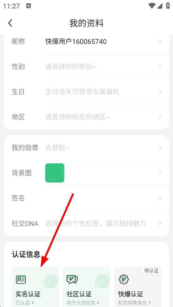 3、在我的资料页面,找到认证信息板块,点击实名认证按钮,输入真实姓名和身份证号,点击提交,即可完成实名认证。