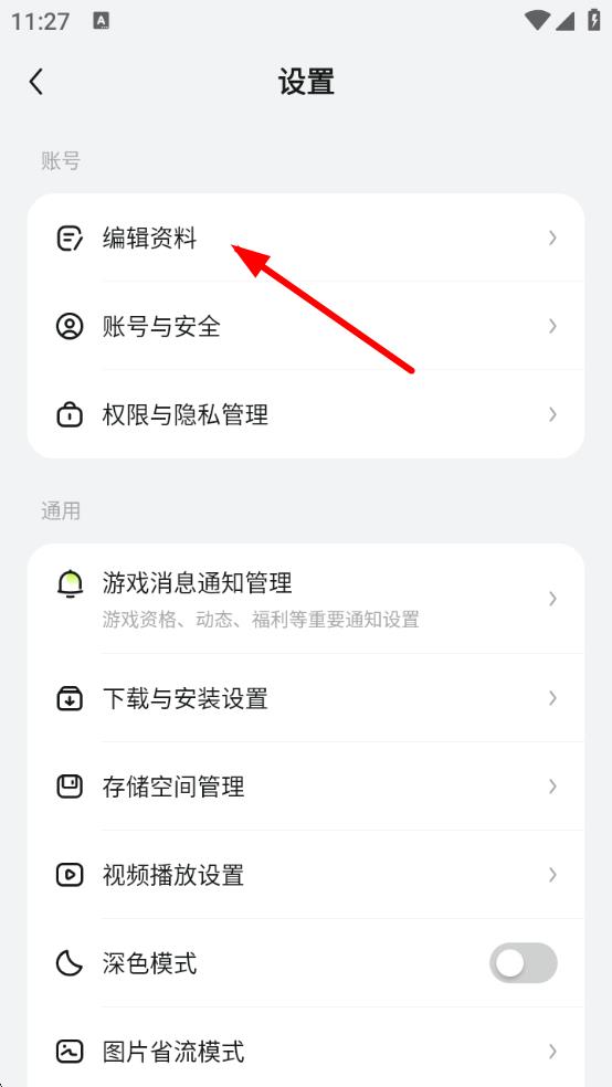 2、在设置页面中,点击编辑资料选项,进入我的资料页面。