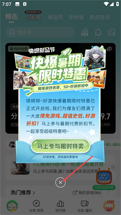 3、我们在跳过海报会看到软件弹出的热门游戏活动,点击下方的×就可以看到软件首页啦!