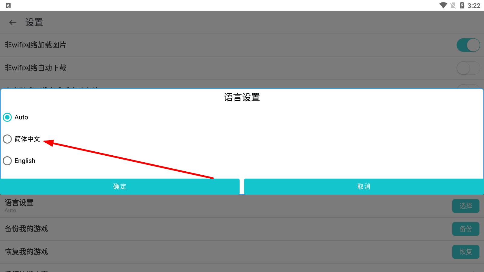 4、在弹出的语言设置窗口中,选择简体中文,然后点击确定即可完成设置。