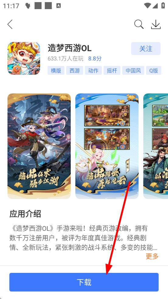 3、在造梦西游OL游戏详情页面,点击下方的下载按钮,下载安装完成后,即可打开游玩造梦西游游戏。