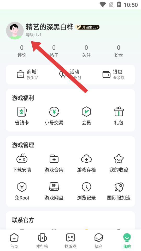 1、打开7723游戏盒APP,进入我的页面,点击上方个人头像区域,进入个人空间的页面。
