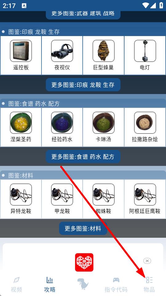 1、打开方舟助手app,点击底部菜单栏中的物品选项。