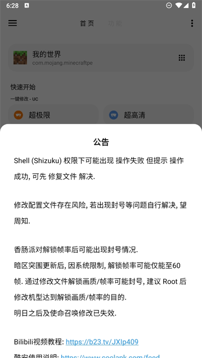 3、进入后还能看到作者的一些公告信息,玩家们第一次使用可以注意一下里面的内容哦;