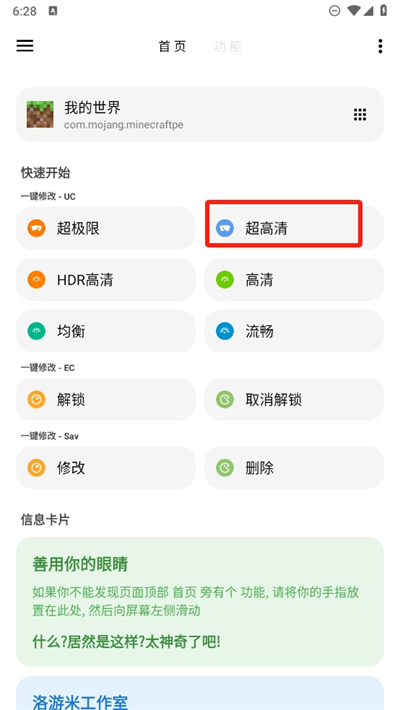 1.致力于解决在使用没有高清画质功能的手机上游戏画质不足的问题。