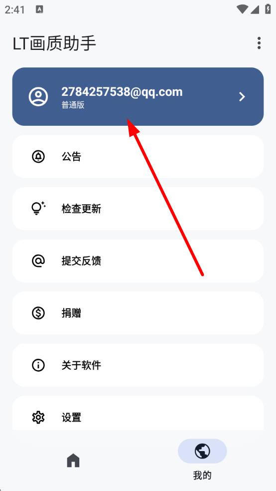 1、打开LT画质助手应用,点击底部导航栏中的我的图标,进入个人相关界面。
