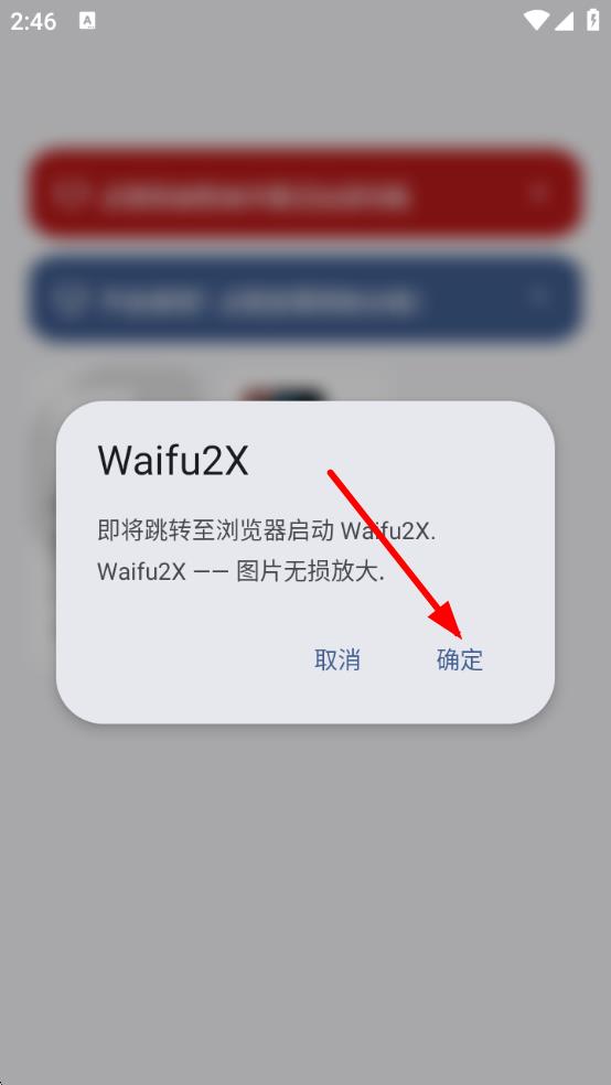 2、若弹出Waifu2X提示窗口,点击确定,准备跳转至浏览器启动相关功能。