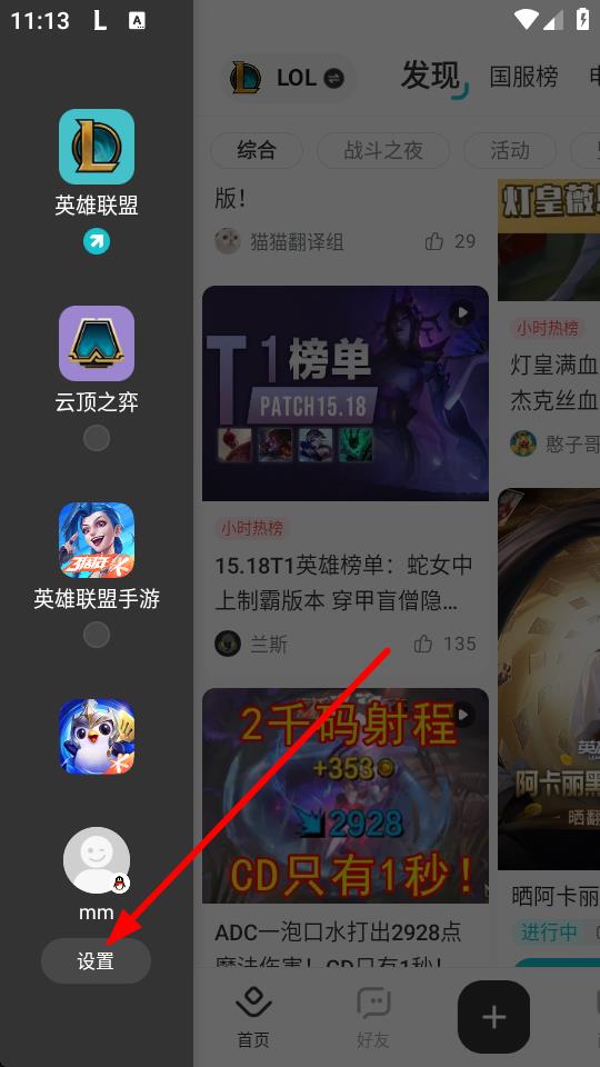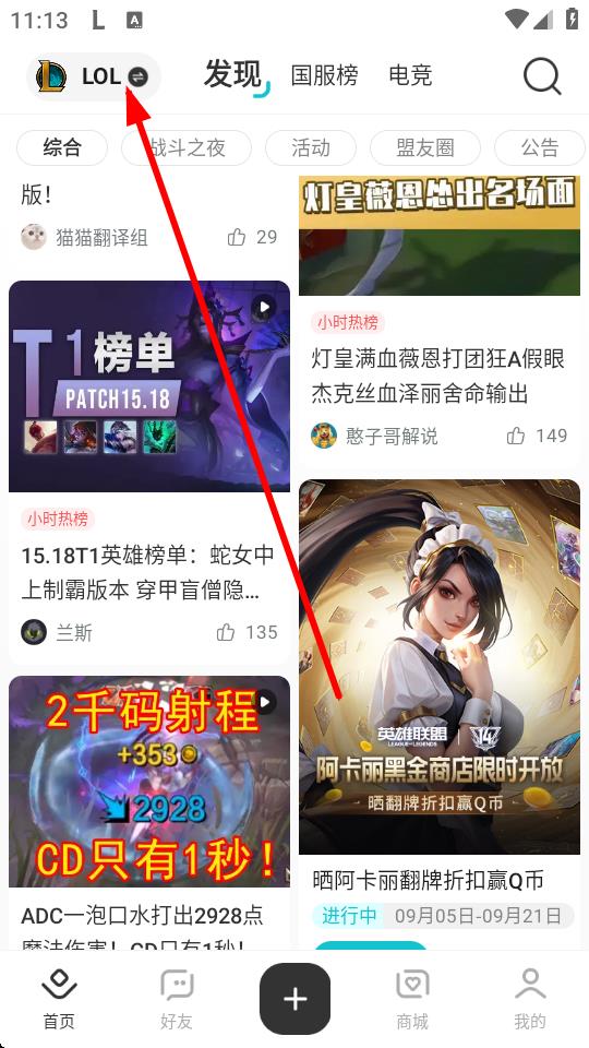 1、打开掌上英雄联盟App,点击左上角的LOL图标。