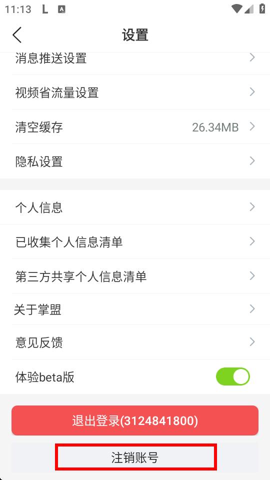 3、进入设置页面后,找到并点击注销账号。