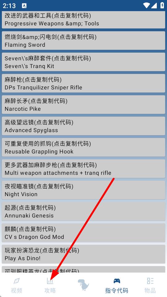 1、打开方舟助手app进入主界面,点击底部菜单栏中的攻略选项。