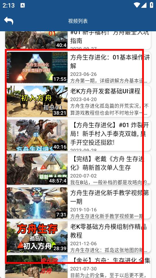 4、点击后会跳转到视频列表界面,这里有各种与所选攻略主题相关的视频教程,点击视频即可观看。