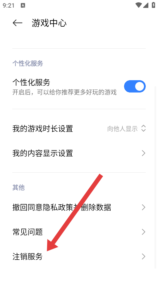 3、在隐私设置的界面中,点击注销服务的选项,然后进入注销服务的页面。