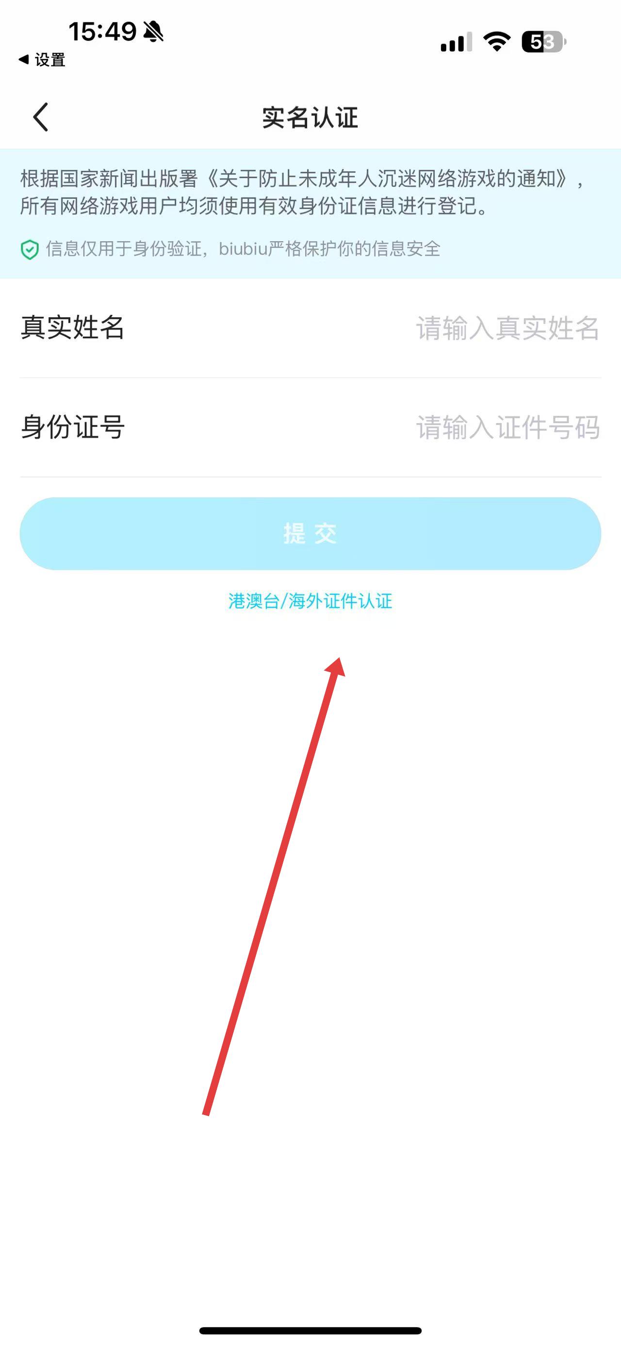 3、进入实名认证页面后,按照要求填写真实姓名和身份证号,点击对应按钮按提示操作,完成后点击提交按钮,即可完成实名认证。