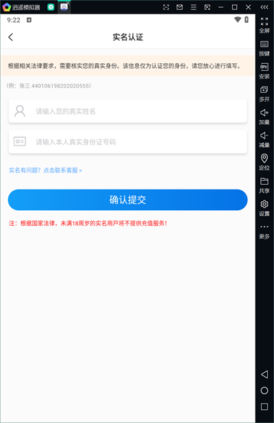 4、之后进入实名认证界面,在这里输入自己的身份证信息即可。