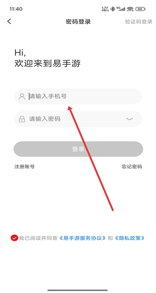 1、点击“服务协议和隐私政策”弹窗的“同意并接受”,进入易手游首页。