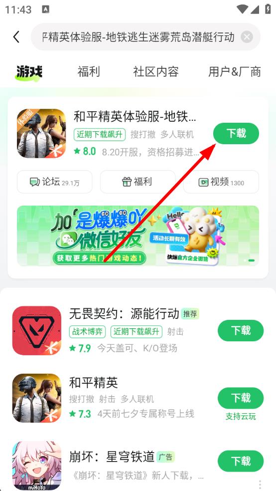 3、在搜索结果中,找到对应游戏,点击游戏旁的下载按钮,下载安装后即可通过游戏内相关功能查看或使用游戏ID。