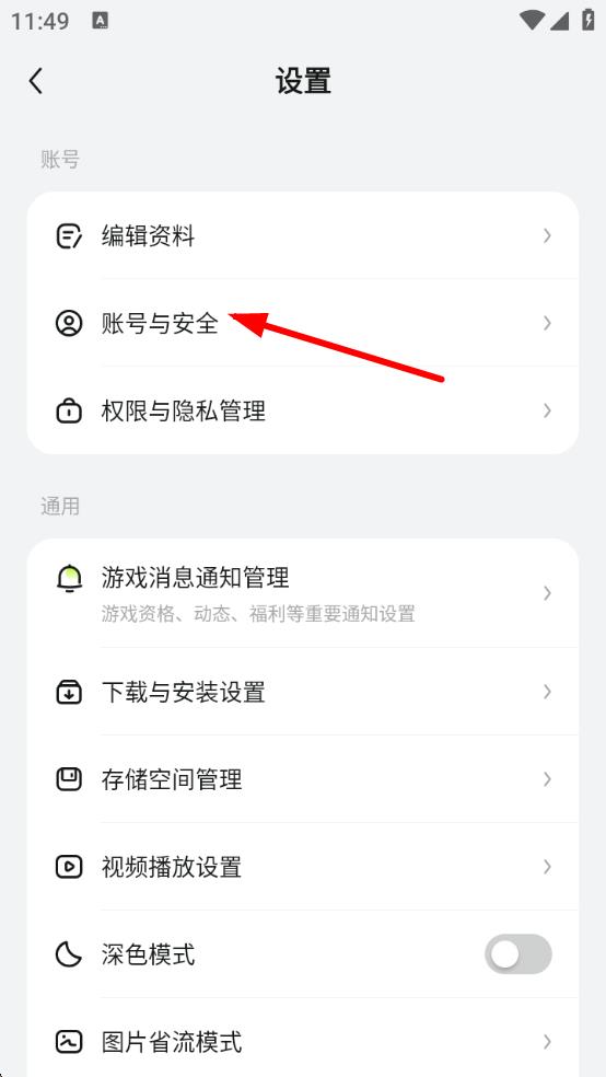 2、在设置页面中,找到并点击账号与安全选项,进入账号与安全相关设置界面。