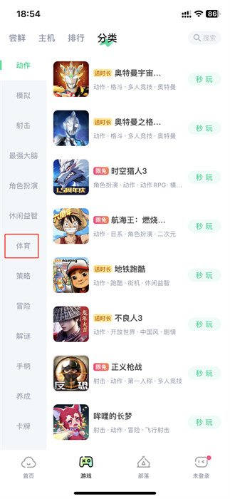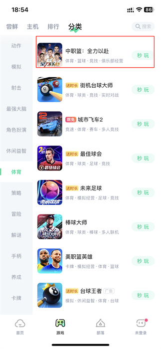 2、此时玩家将可以点击一个自己喜欢的游戏分类来进行游戏的查看,如【体育】类游戏;