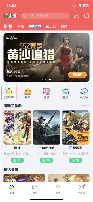 1、点击【全部游戏】按钮,以进行游戏分类的查看;