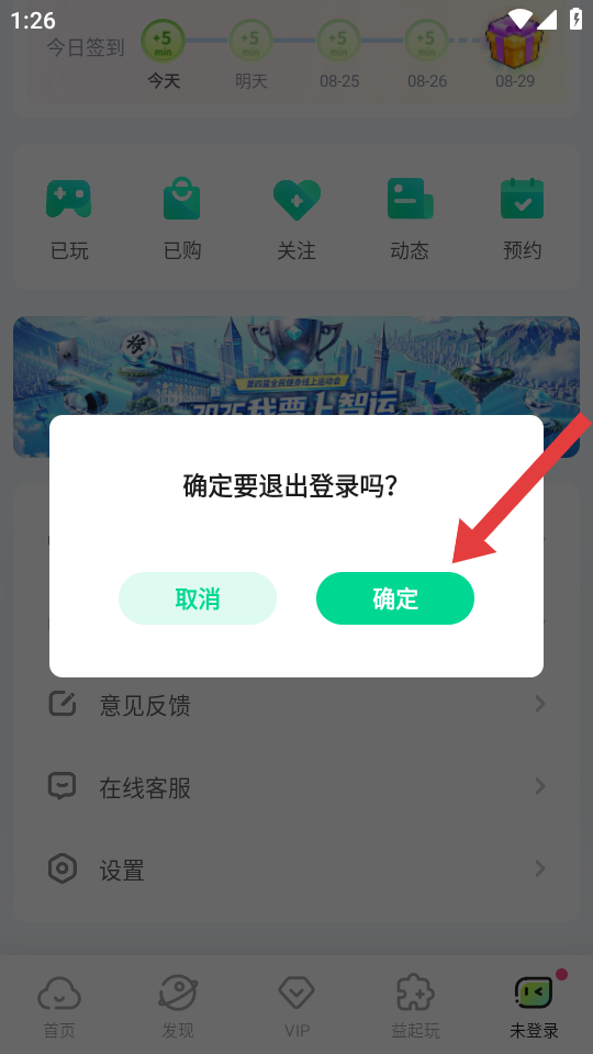 3、在弹出的确定要退出登录吗对话框中点击确定按钮,完成当前账号退出后即可登录其他账号。