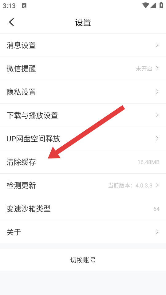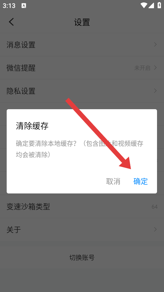 3、在设置的界面,点击清除缓存选项,触发缓存清除的确认框。