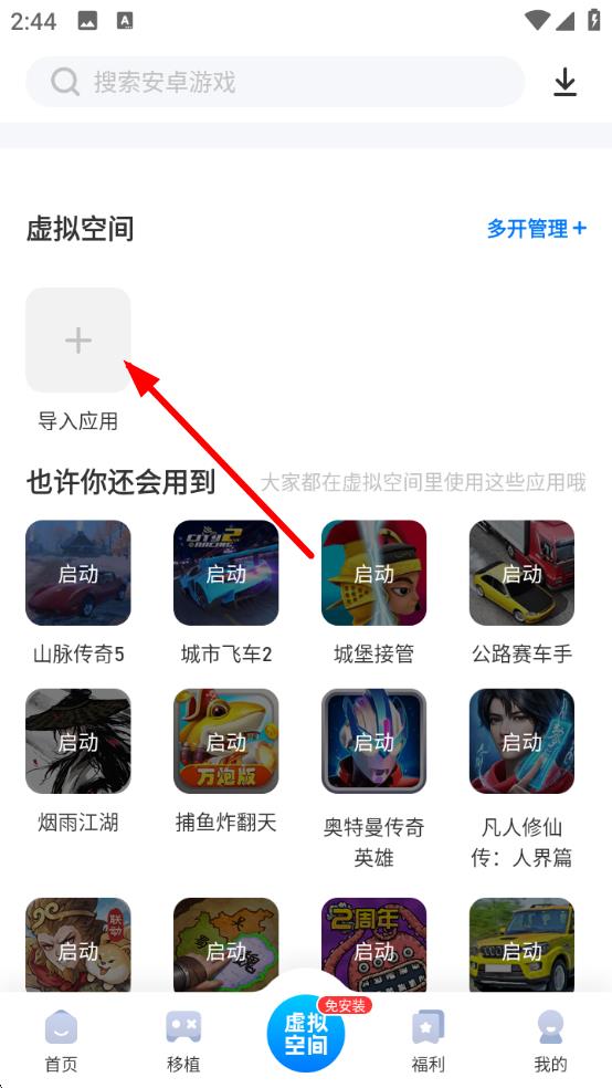3、在应用列表中勾选要添加的游戏点击导入完成后点击游戏图标即可在虚拟空间运行。