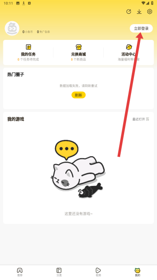3、在摸摸鱼主界面右上角,找到立即登录按钮并点击,进入账号登录页面,准备进行登录操作。