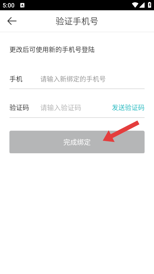 5、在新手机号绑定页面,输入新手机号和对应验证码后,点击完成完成手机号换绑。