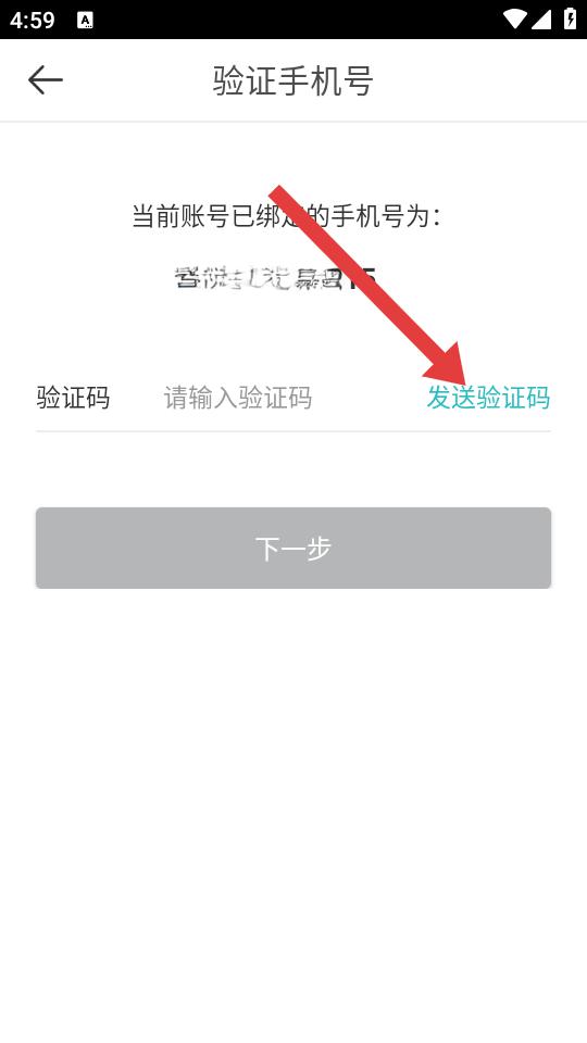 4、进入验证原手机号页面后,点击发送验证码,输入收到的验证码后点击下一步。