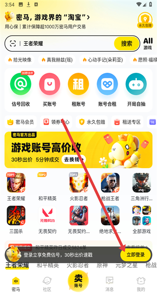 密马app精选高端账号,超高性价比,租号低至一元。