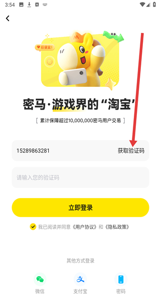 3、在登录界面点击“获取验证码”,输入收到的验证码。