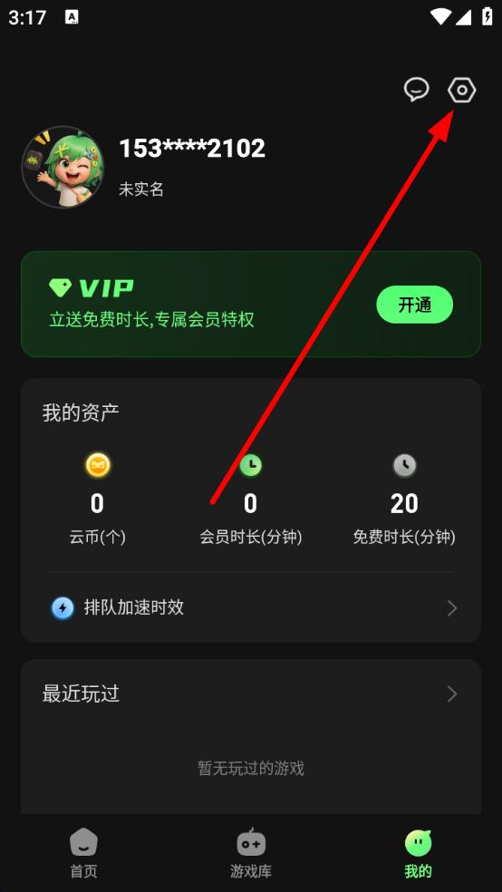 1、打开格来云游戏应用,点击底部导航栏中的我的,进入个人页面。