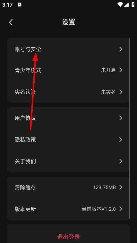 3、在设置界面里,点击账号与安全选项,进入账号安全设置页,再点击注销账号,按照后续提示完成账号注销操作。