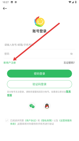 3、在账号登录界面,若没有账号,可以点击新用户注册按钮,进行注册。