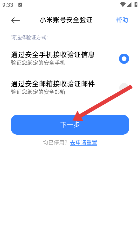 3、选择通过安全手机接收验证信息或通过安全邮箱接收验证邮件,确认后点击下一步,按后续提示完成密码修改。