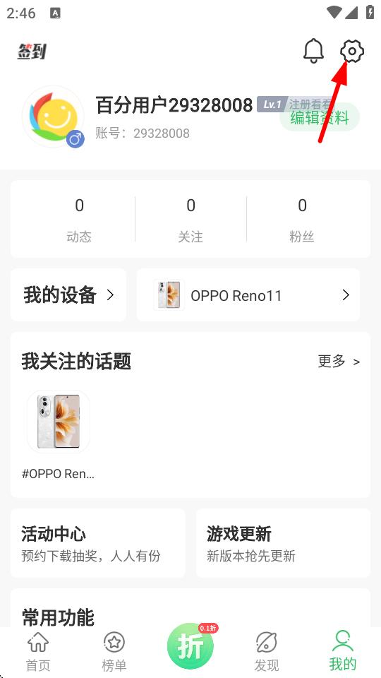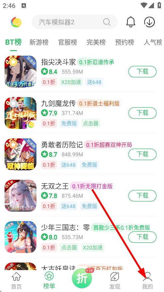 1、打开百分网游戏APP,点击底部导航栏最右侧的我的选项。