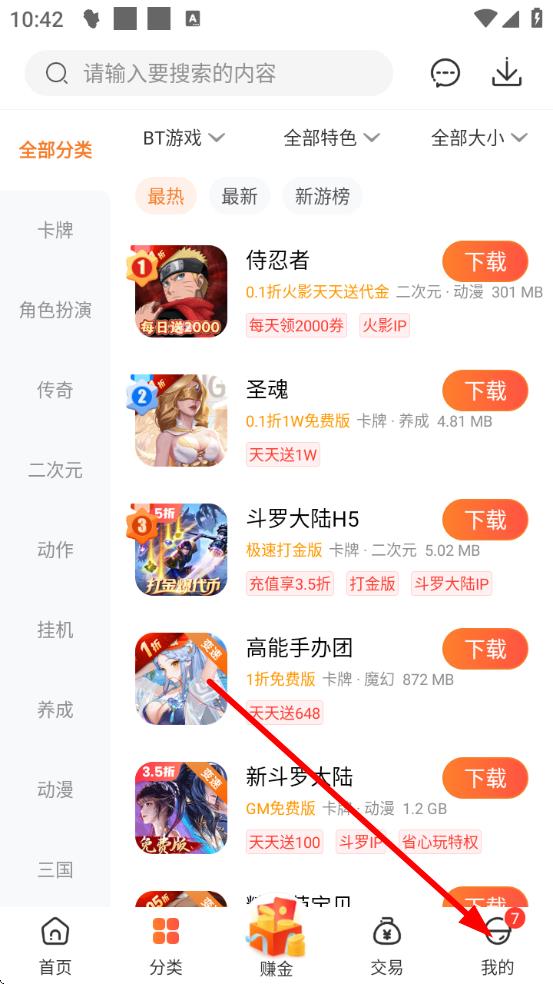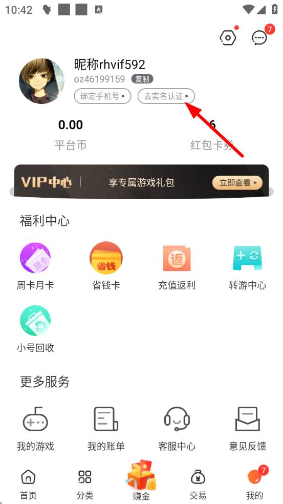 1、打开红果游戏盒子点击我的进入个人中心页面,找到下方各类服务功能入口的上方区域。