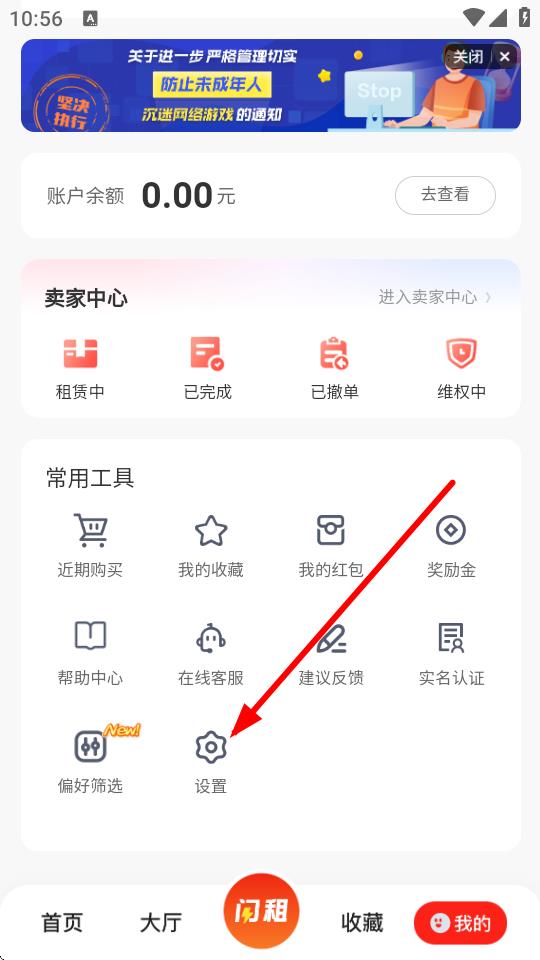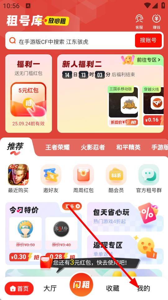 1、打开租号酷APP,点击底部导航栏中的我的。