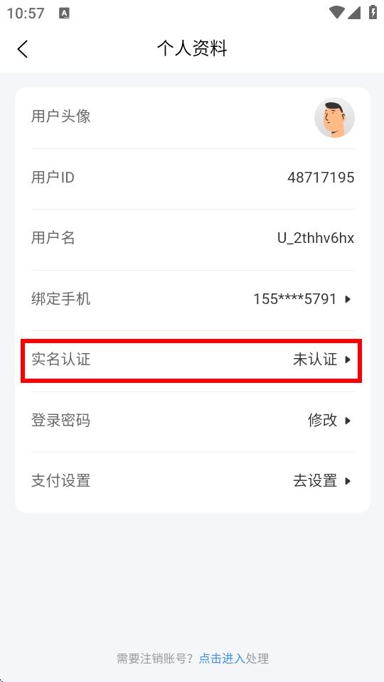 4、在个人资料页面中,找到实名认证选项并点击。