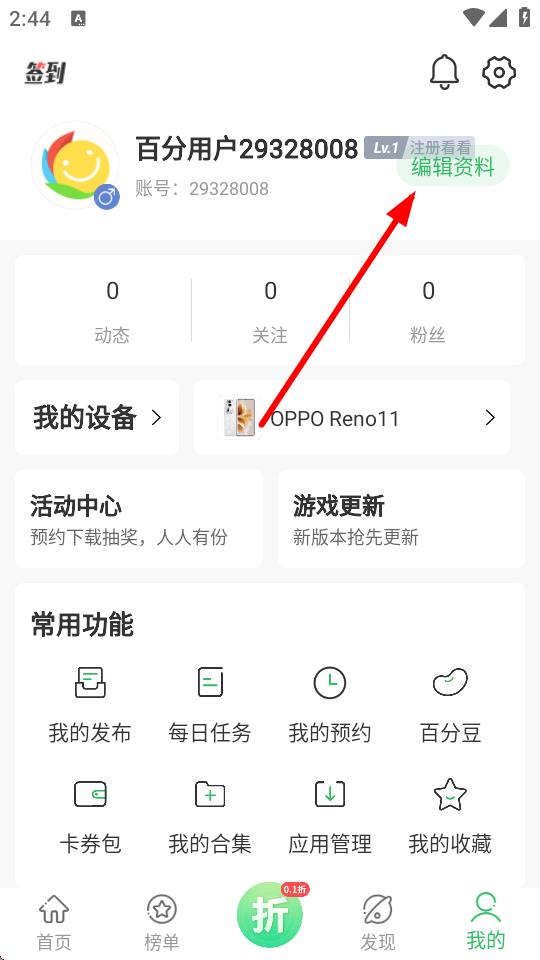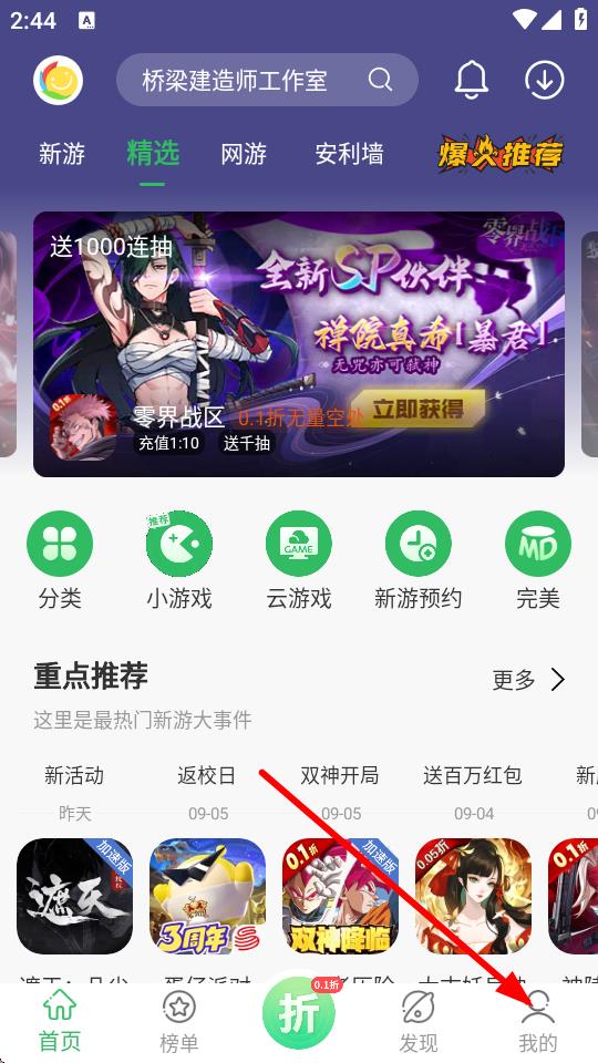 1、打开百分网游戏APP,点击底部导航栏最右侧我的选项。